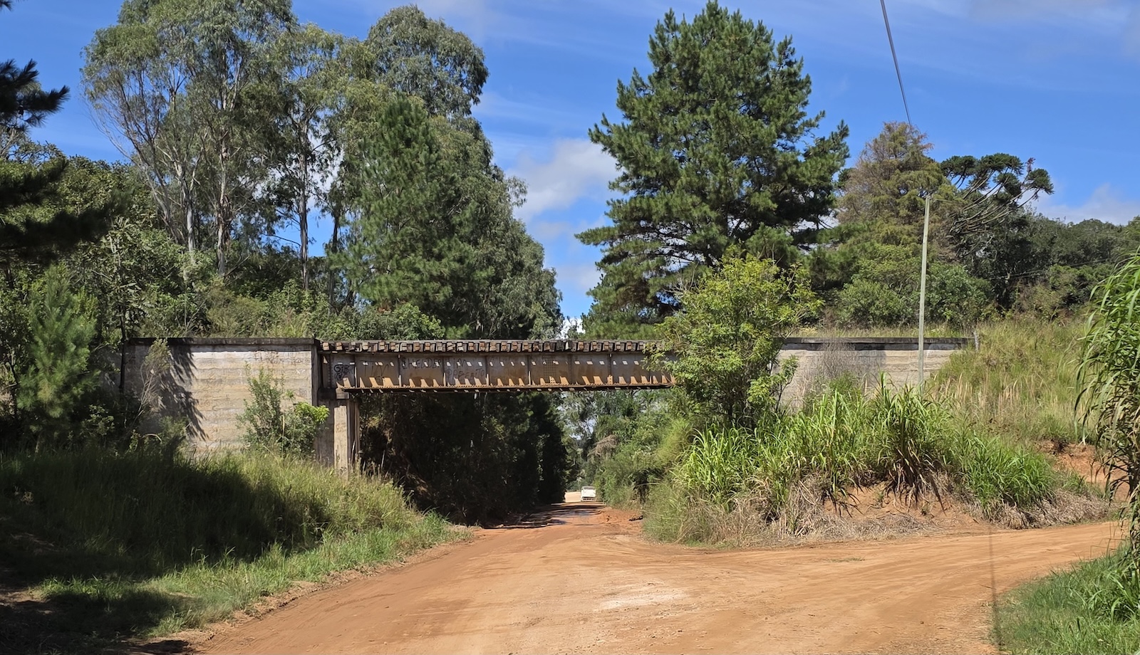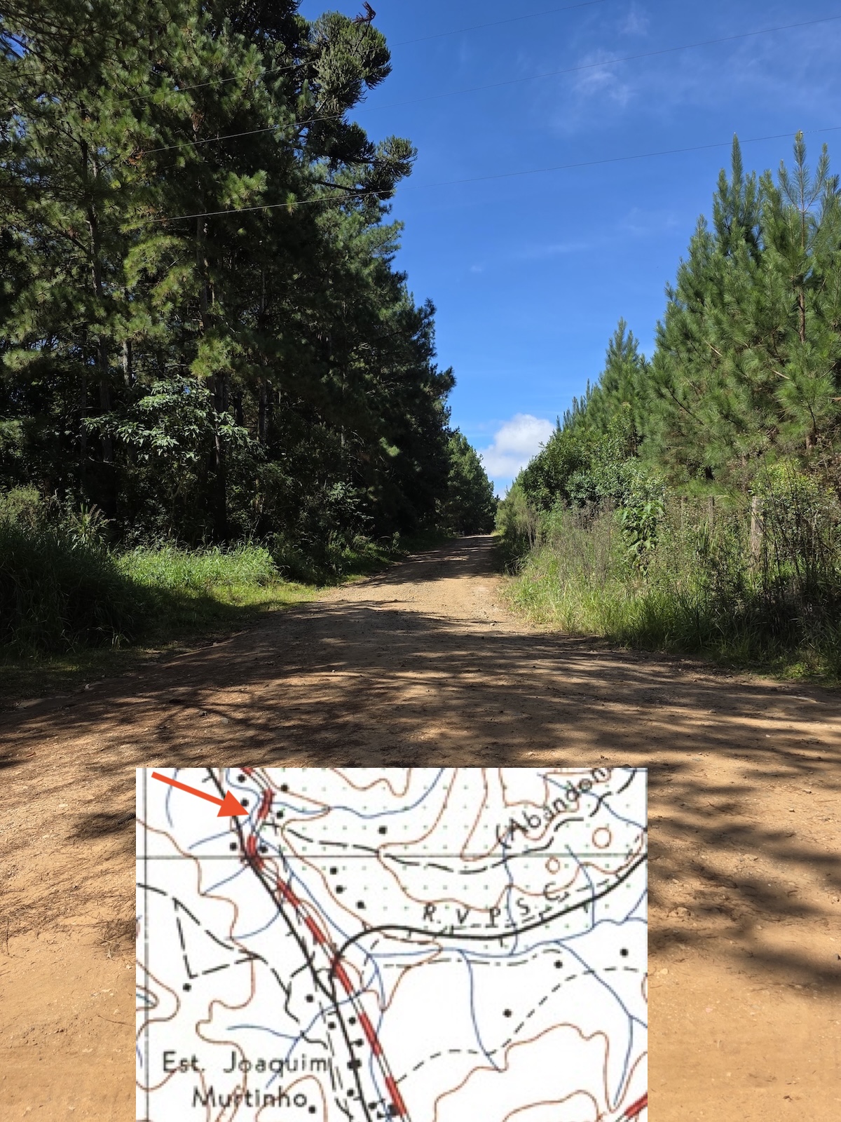 O único lugar em que eu acho que consegui achar o leito original, reaproveitado como estrada de reflorestamento, foi em Joaquim Murtinho, entre duas pontes, um pouco adiante do viaduto da variante.
