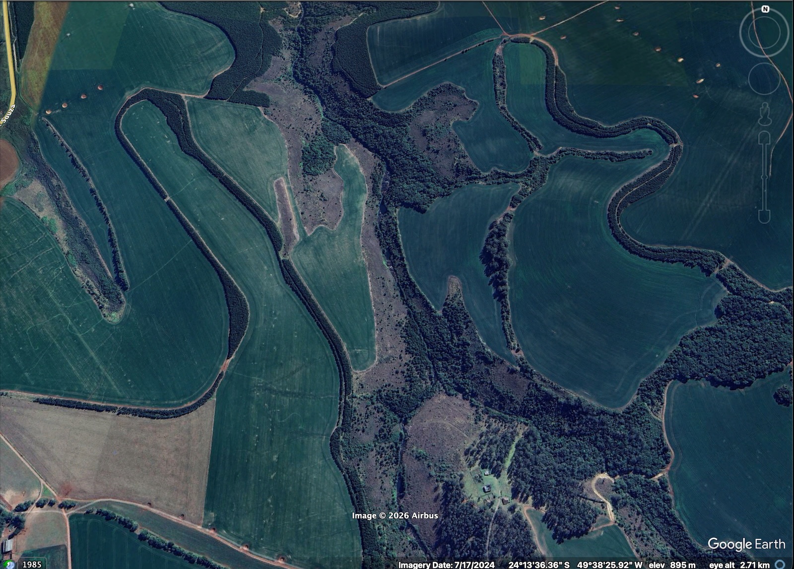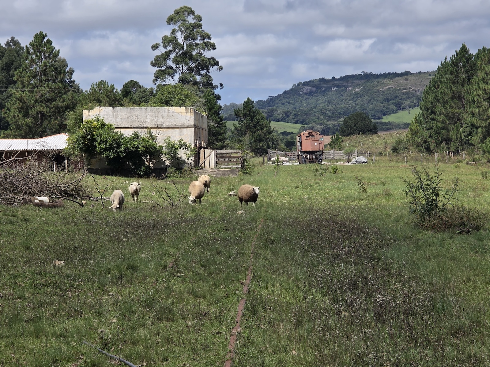 Alguma coisa se consegue ver olhando de cima, com drone ou Google Earth, porque a ferrovia original delimitou fazendas e sítios, e aí algumas culturas e caminhos internos ainda seguem os contornos da ferrovia, aqui e ali. Mas é difícil ver isso do nível do chão.