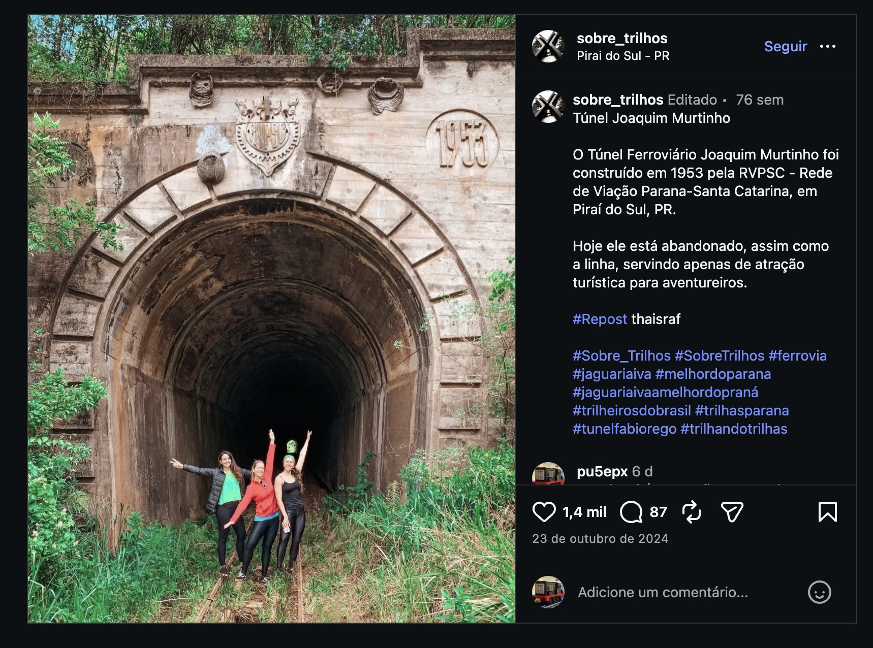 A propósito, muitos duvidam que o trecho entre Joaquim Murtinho e Jaguariaíva tenha sido retificado. Além do mapa do IBGE, há evidências físicas: um viaduto sobre a estrada na saída de Joaquim Murtinho, e um túnel mais adiante perto da estação de Presidente Castilhos. Além do túnel ser claramente datado em 1953, obras desse quilate simplesmente não existiam no primeiro traçado.