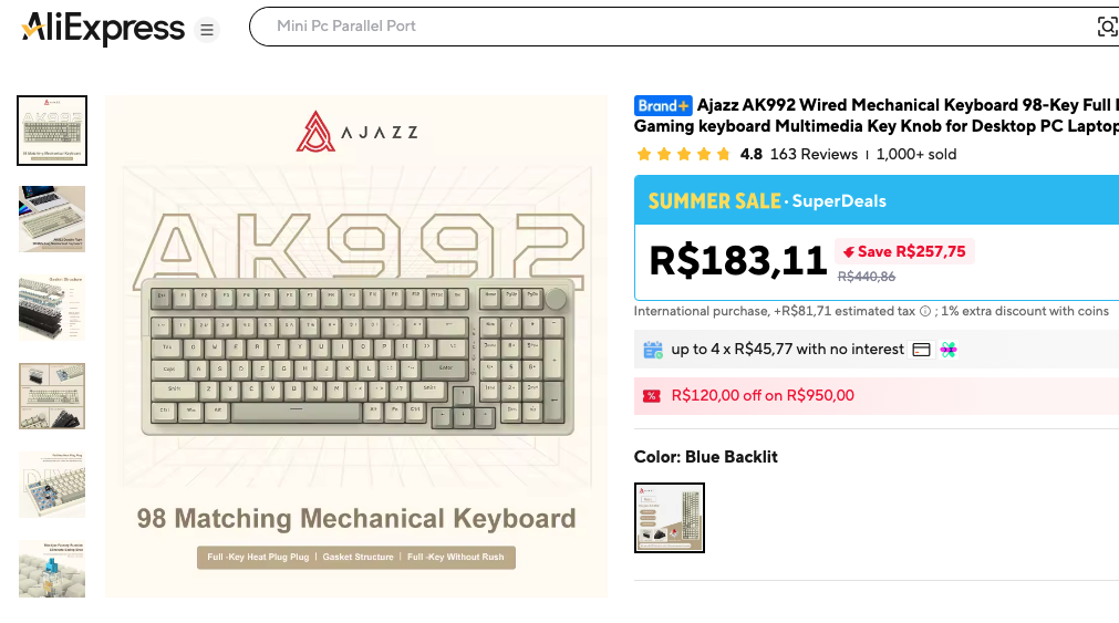 Nos últimos tempos, voltei a pesquisar no AliExpress para ver as novidades, e quem sabe montar mais um tecladinho. Para minha surpresa, encontrei muito menos kits e peças do que antigamente. E definitivamente não vi nada novo e excitante. A "febre" dos teclados DIY já era.