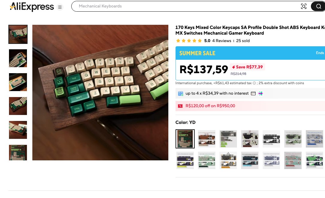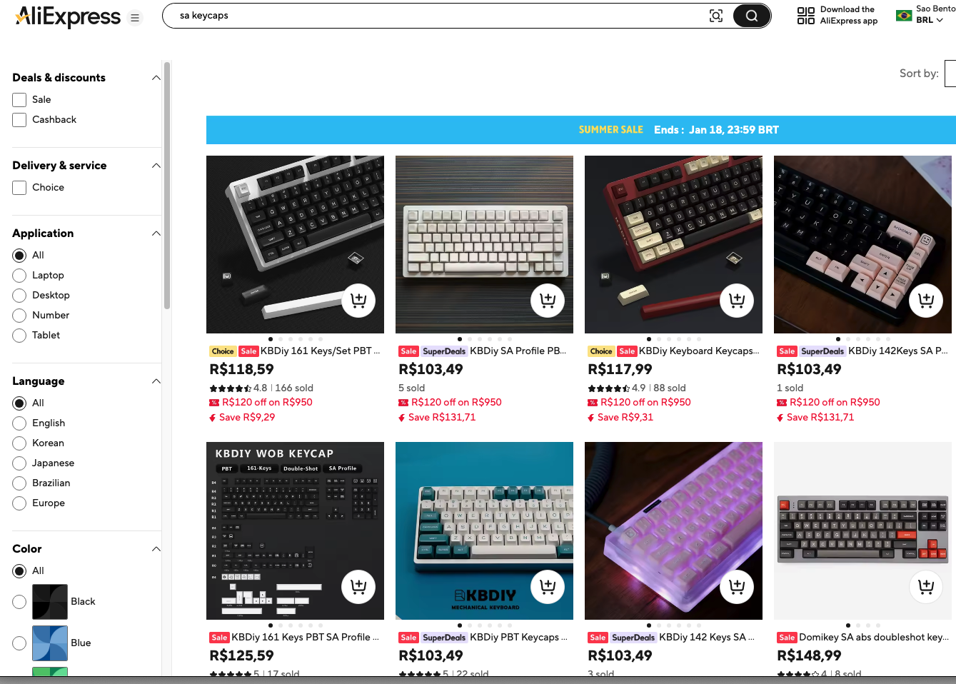 Os keycaps SA do AliExpress baratearam muito, mas não são "daquela" qualidade que se via antigamente. De qualquer forma, se seu objetivo é apenas dar uma levantada no visual do teclado, agora isso está muito mais acessível.
