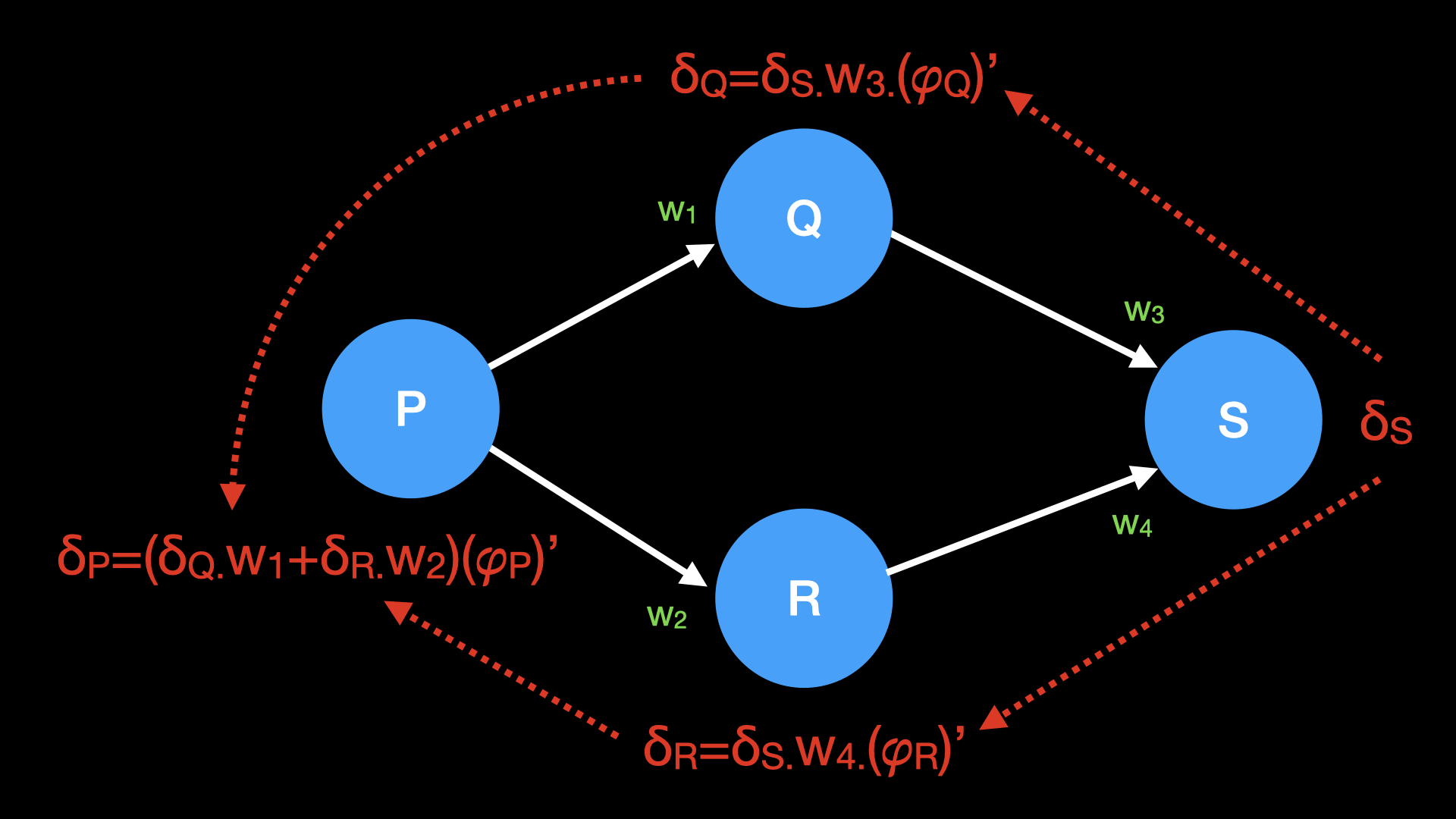 Essa definição recursiva de δ tem origem matemática na regra da cadeia, mencionada antes.