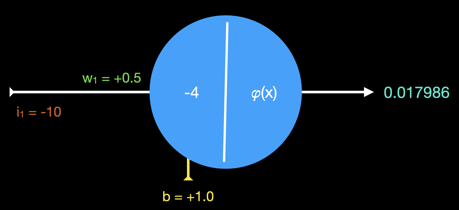 saida = 1 / (1 + e-(-4.0)) = 0.017986